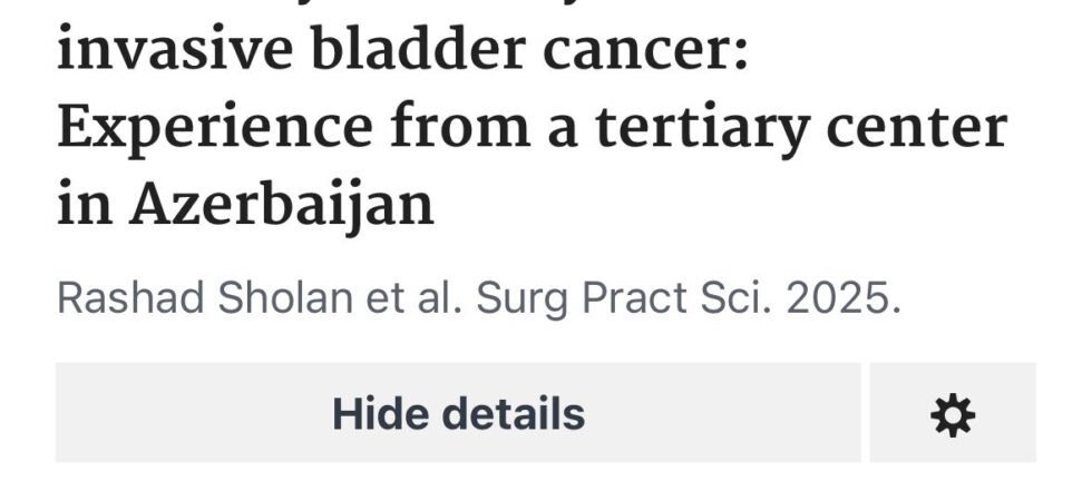 Dövlət Təhlükəsizlik Xidməti Hərbi Tibb Baş İdarəsi Elmi Təcrübə Mərkəzində yerinə yetirilən növbəti elmi-tədqiqat işi nüfuzlu “Surgery in Practice and Science” jurnalında dərc olunub. “Single-surgeon outcomes of open radical cystectomy for muscle-invasive bladder cancer: Experience from a tertiary center in Azerbaijan” adlı məqalə ölkəmizdə uzun illər ərzində invaziv sidik kisəsi xərçəngi ilə bağlı aparılan tədqiqatların nəticələrini özündə əks etdirir.